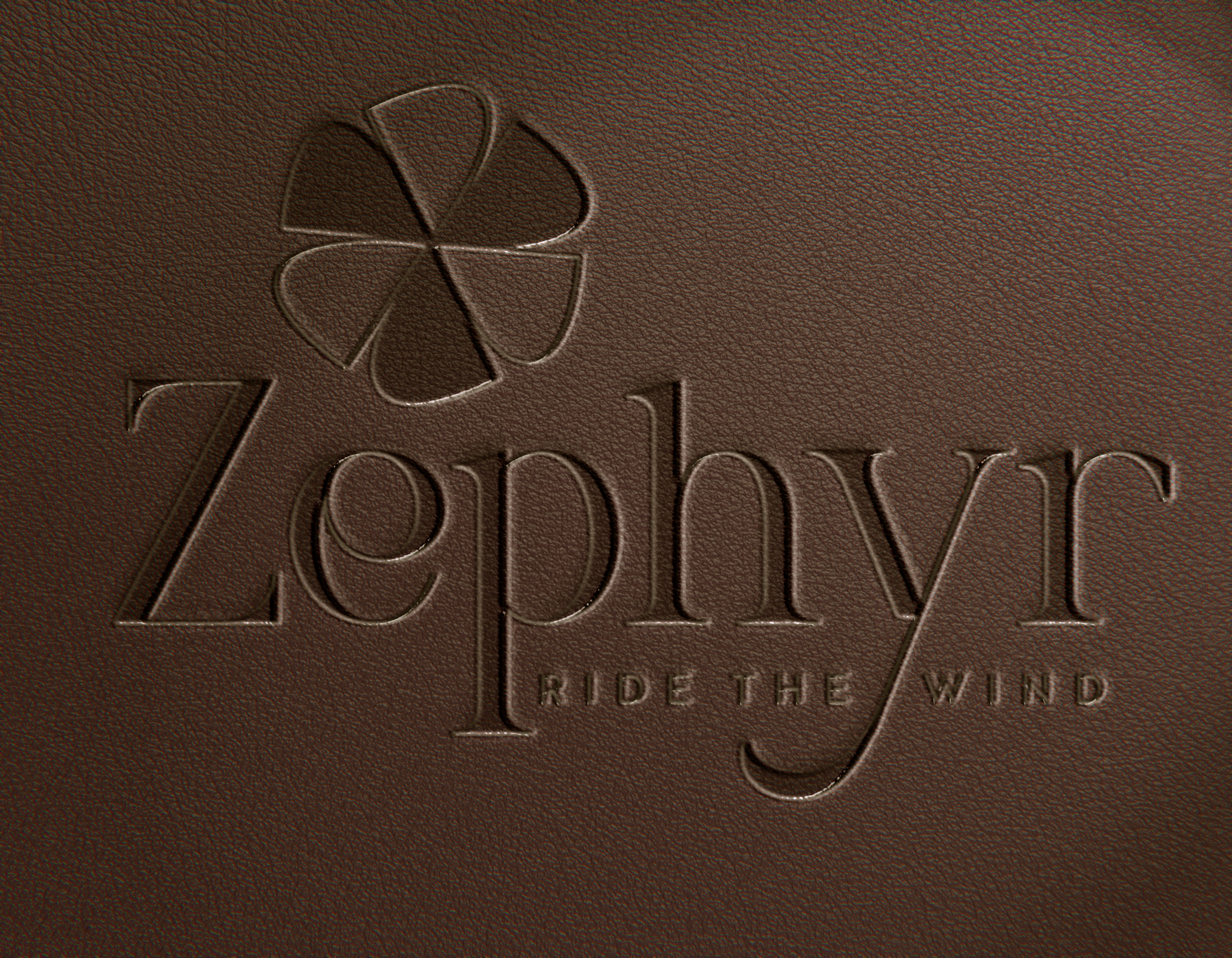 The first hurdle was naming the brand. I wanted to allude to the winter motif, and landed on the name Zephyr, meaning the west wind. This lent itself to logo ideas centered on the idea of breeze, which culminated in a pinwheel-style logo mark and an altered typeface of Boho Breeze for the word mark.